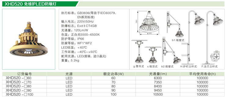 產品中心 防爆免維護節能LED燈 XHD520免維護LED防爆燈