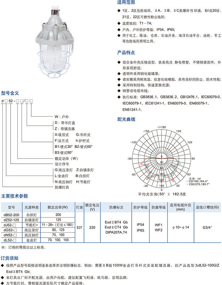 產品中心 防爆燈具 dB52系列防爆燈(ⅡB、ⅡC、DIP)