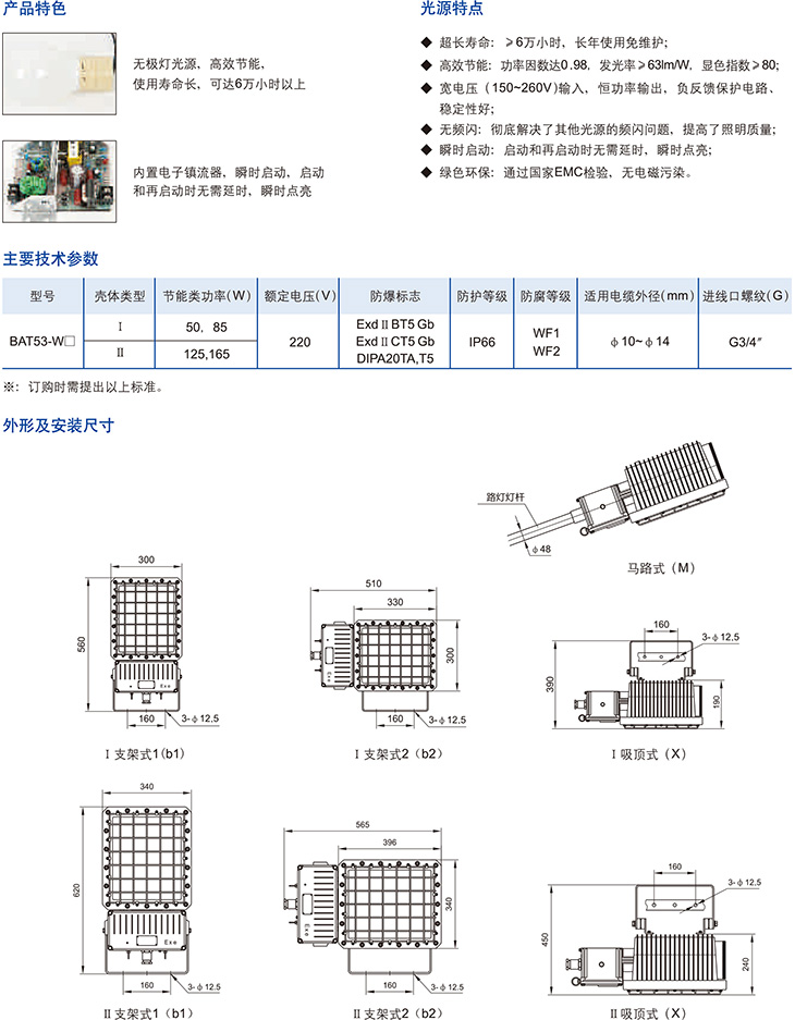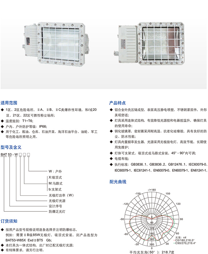 產品中心 防爆燈具 BAT53-W系列防爆泛光無極燈(ⅡB、ⅡC、DIP)