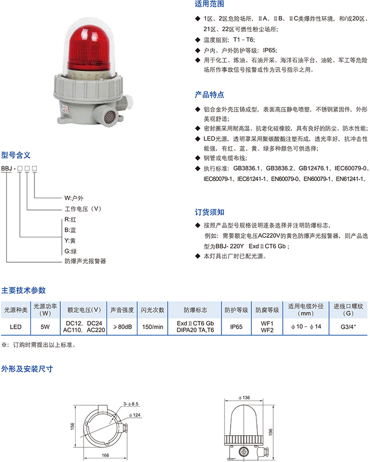BBJ系列防爆聲光報警器(LED)(ⅡB、ⅡC、DIP)