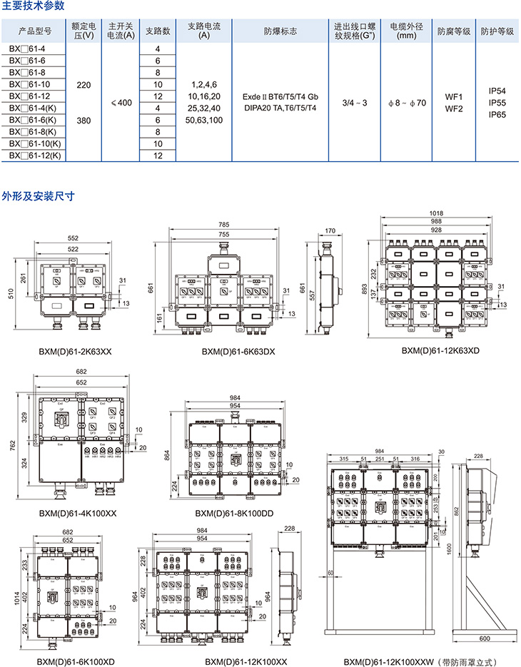 產品中心 防爆配電箱 BXM(D)61系列防爆照明(動力)配電箱(ⅡB、DIP)