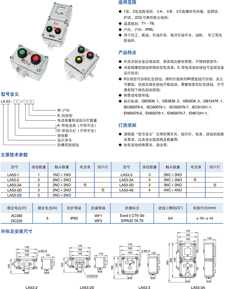 服務熱線:18368700777 產(chǎn)品中心 防爆配電箱 LA53系列防爆控制按鈕(ⅡB、ⅡC、DIP)