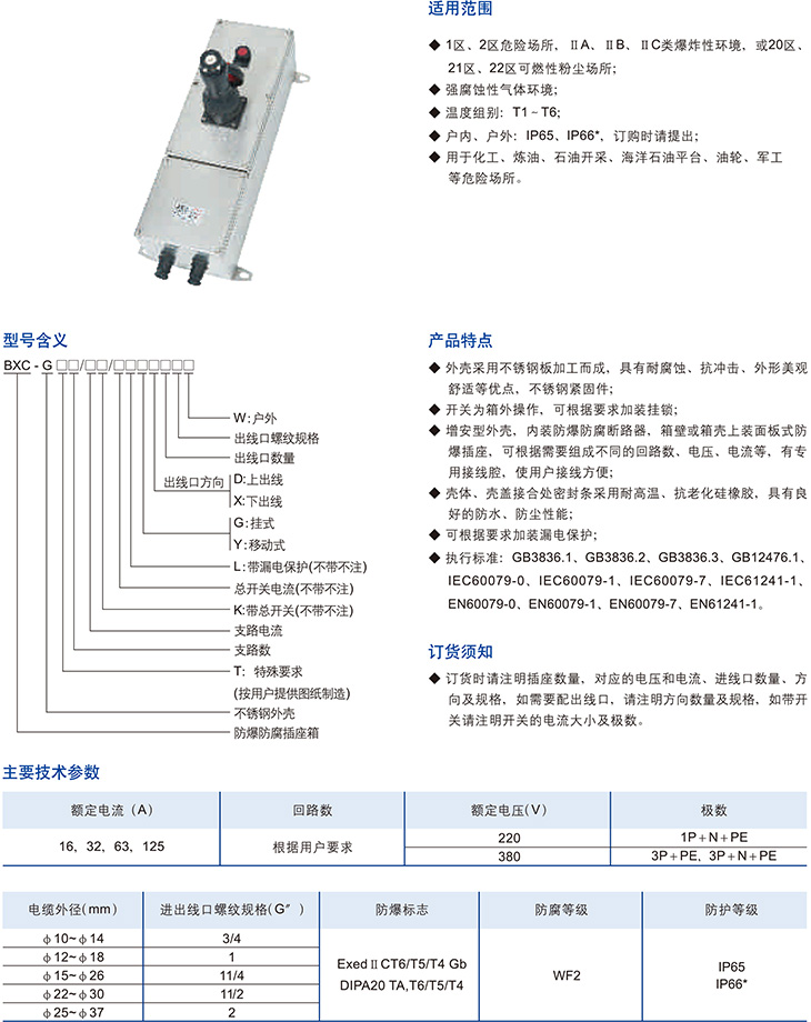 產品中心 防爆不銹鋼 BXC-G系列防爆防腐插座箱(不銹鋼)(ⅡB、ⅡC、DIP)