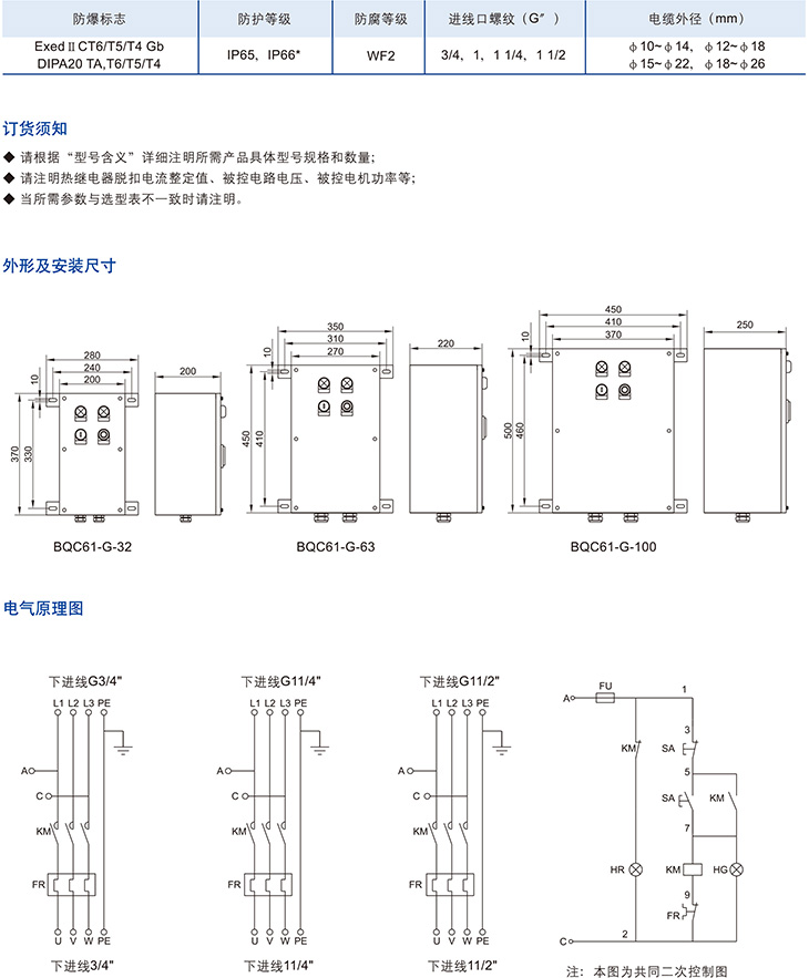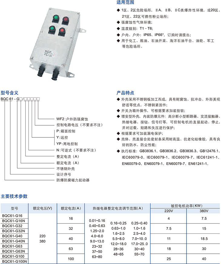 產品中心 防爆不銹鋼 BQC61-G系列防爆防腐磁力起動器(不銹鋼)(ⅡB、ⅡC、DIP)