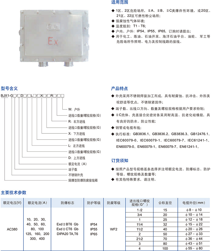 BJX1-G系列隔爆型防爆防腐接線箱(不銹鋼)(ⅡB、ⅡC、DIP)