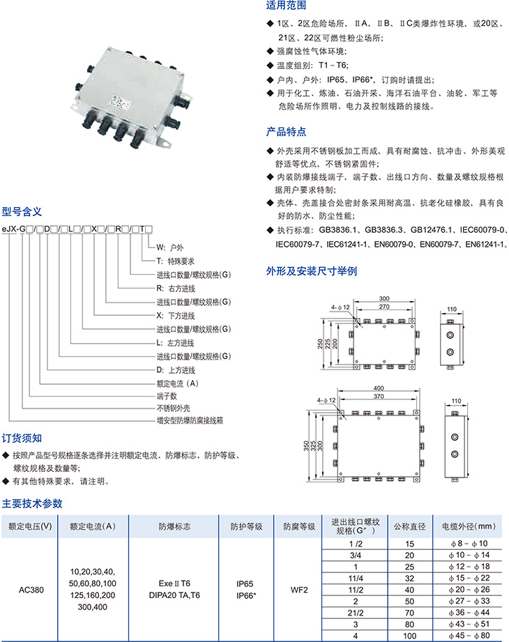服務(wù)熱線:18368700777 產(chǎn)品中心 防爆不銹鋼 eJX-G系列增安型防爆防腐接線箱(不銹鋼)(eⅡ、DIP)