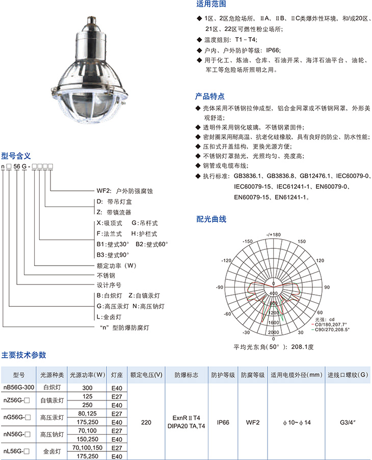 產品中心 防爆不銹鋼 nB56G系列"n"型防爆防腐燈(nR、DIP)