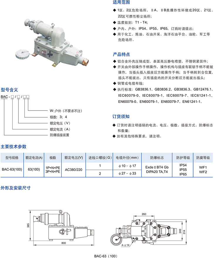 BAC系列防爆插接裝置(ⅡB、DIP)