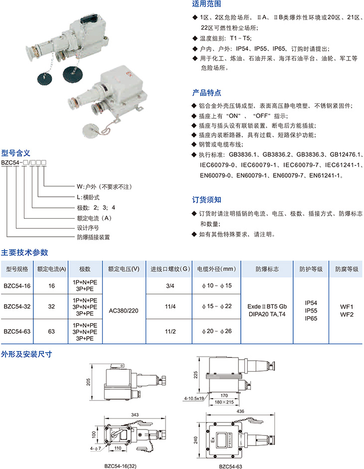 產品中心 防爆其他 BZC54系列防爆插接裝置(ⅡB、DIP)
