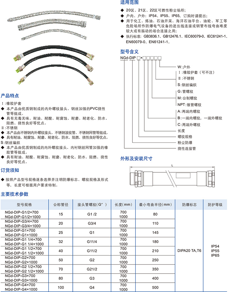 產品中心 粉塵防爆電器 NGd-DIP系列粉塵防爆撓性連接管
