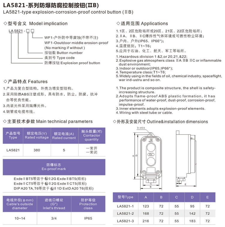 產品中心 防爆操作柱 LA5821-系列防爆防腐控制按鈕(IIB)