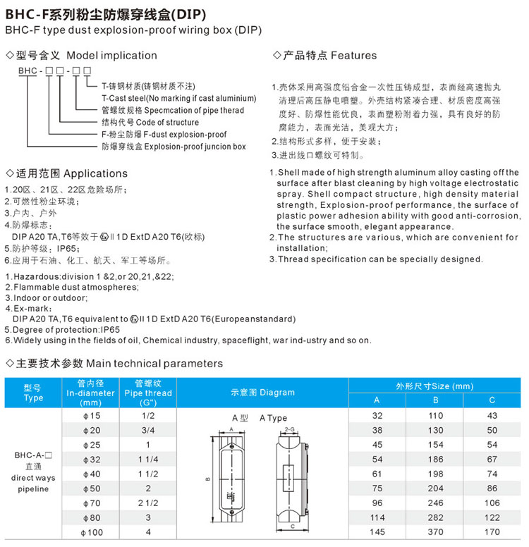 產品中心 防爆管件 BHC-F系列粉塵防爆穿線盒(DIP)