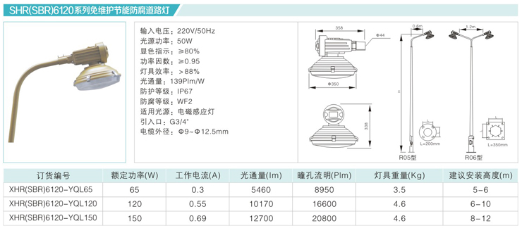 服務熱線:18368700777 產品中心 防爆免維護節能無極燈 SHR(SBR)6120系列免維護節能防腐道路燈