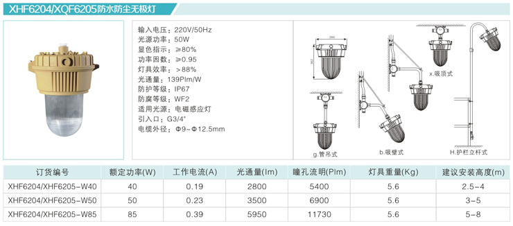 服務熱線:18368700777 產品中心 防爆免維護節能無極燈 XHF6204/XQF6205防水防塵無極燈