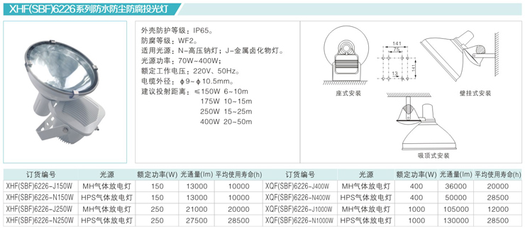 服務熱線:18368700777 產品中心 防爆免維護節能無極燈 XHF(SBF)6226系列防水防塵防腐投光燈