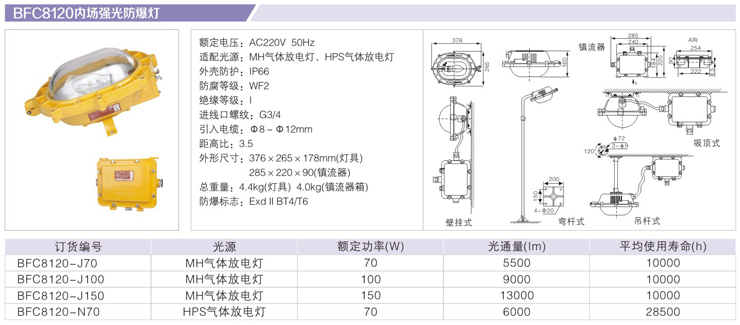 產品中心 固定式防爆燈 BFC8120內場強光防爆燈